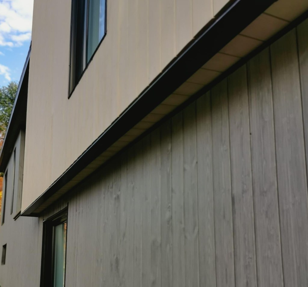Cette résidence perchée en nature, s’harmonise parfaitement avec son milieu et attire le regard. Deux teintes de revêtement de bois ajoute un cachet exceptionnel à cette maison du Lac-Beauport.
